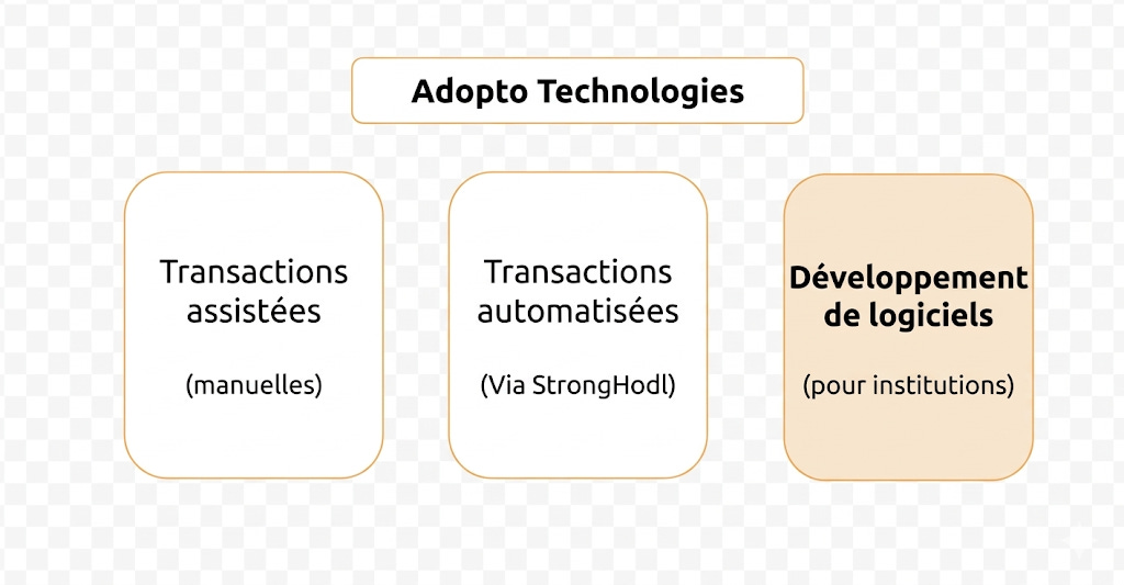 En devenant Adopto Technologies, nous lançons officiellement notre nouvelle division de développement technologique pour les entreprises qui souhaitent faire le virage vers les actifs numériques.